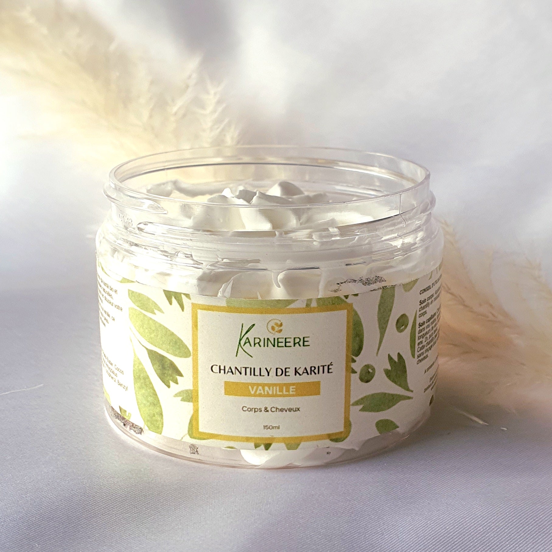 Notre chantilly au beurre de karité bio et aux huiles végétales naturelles a été conçue pour nourrir en douceur votre peau et vos cheveux. Subtilement parfumé à la vanille, ce baume laissera votre peau délicatement parfumée.